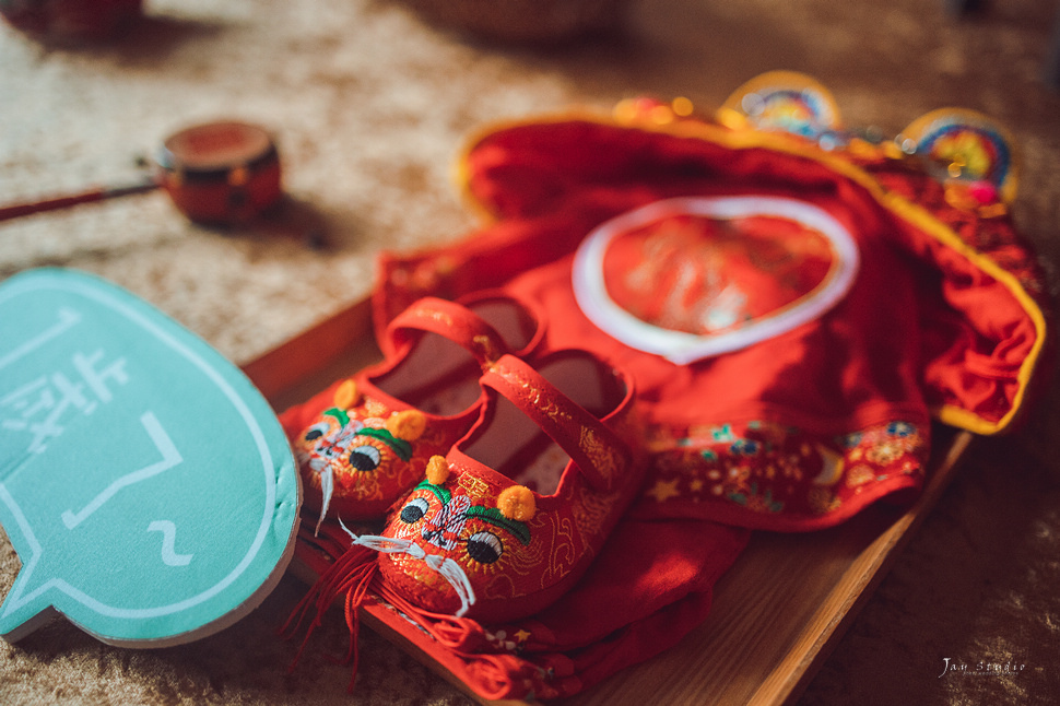 穿虎衣、戴虎帽、穿虎鞋、敲響銅鑼、踩紅龜,傳承老祖宗的智慧,象徵寶貝健康成長。